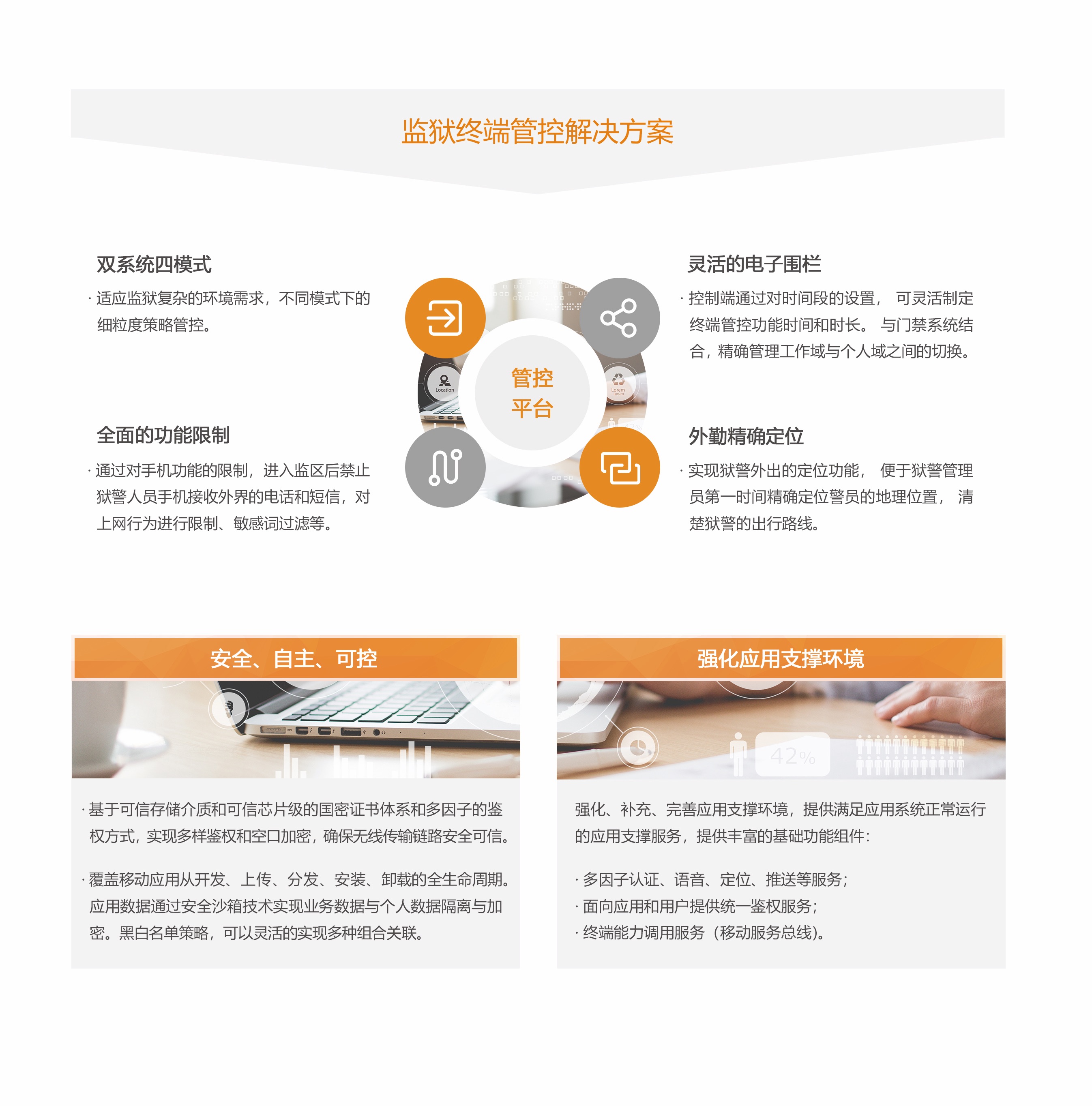 利來以司法部《司法行政移動執(zhí)法系統(tǒng)技術(shù)規(guī)范》、智慧監(jiān)獄、智慧戒毒等相關(guān)技術(shù)規(guī)范為依托,為司法行業(yè)提供移動執(zhí)法系統(tǒng)解決方案。其中包括:整體平臺設(shè)計搭建、移動執(zhí)法終端管控、司法移動應(yīng)用、移動應(yīng)用支撐體系以及定制雙域四模式安全執(zhí)法終端等建設(shè)內(nèi)容。